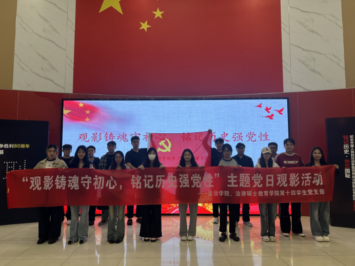为纪念中国人民抗日战争暨世界反法西斯战争胜利80周年,深入开展爱国主义教育,缅怀革命先烈,厚植家国情怀,激发青年学生的历史使命感与责任感,9月18日,法治学院、法律硕士教育学院第十四学生党支部组织支部学生党员观看爱国主义题材电影《731》。