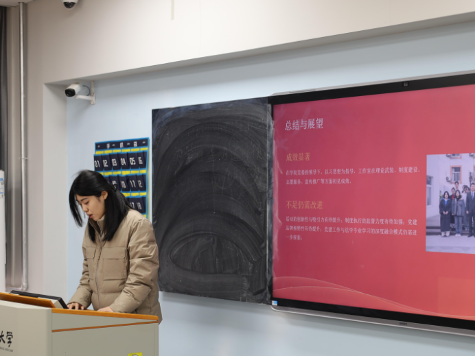 “星火”党员工作室第一届成员梁艺馨围绕思想引领、内部建设、志愿服务、品牌塑造等方面内容,对“星火”党员工作室2024—2025年度工作进行总结汇报。