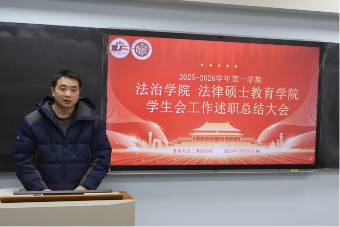 2025年1月8日下午,法治学院、法律硕士教育学院学生会工作述职总结大会于三号教学楼3506教室召开。学院辅导员李谦盛主持会议,全体辅导员与学生会成员共同参会。