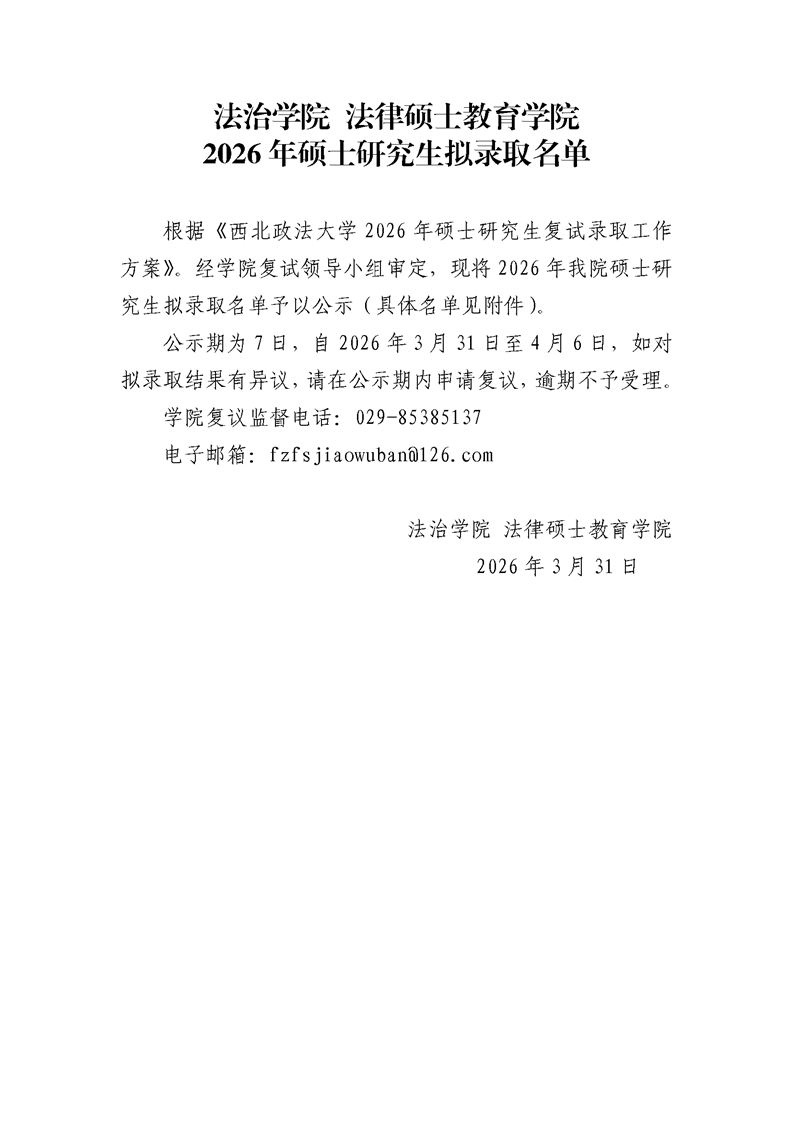 下一篇:法治学院 法律硕士教育学院 法律史专业研究生一志愿考生复试录取方案